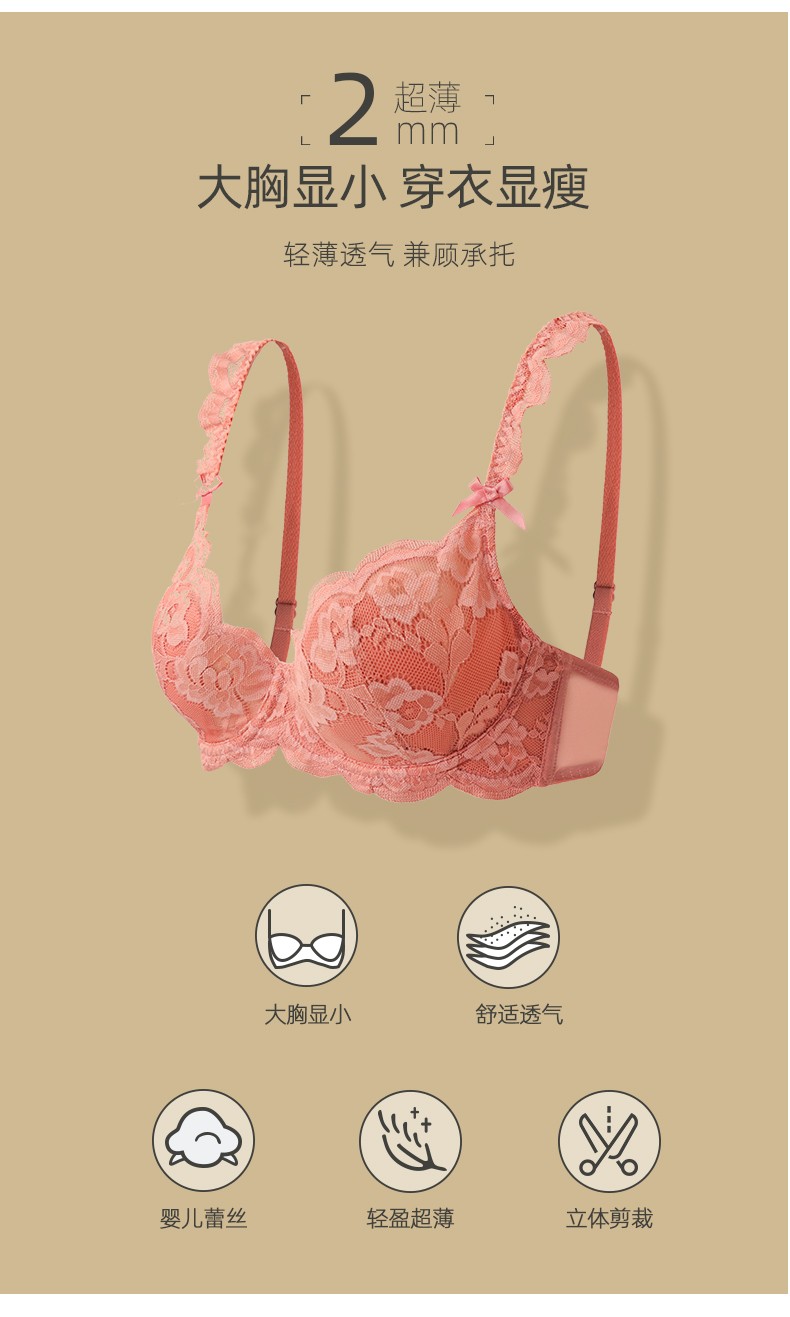 首页 > > 好奇蜜斯法式蕾丝内衣女大胸显小文胸套装超薄款性感bra少女日系