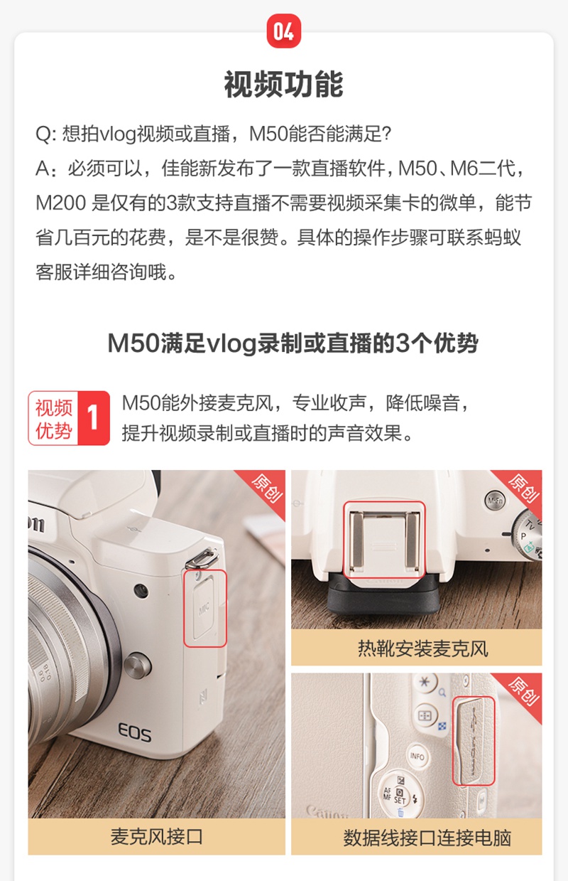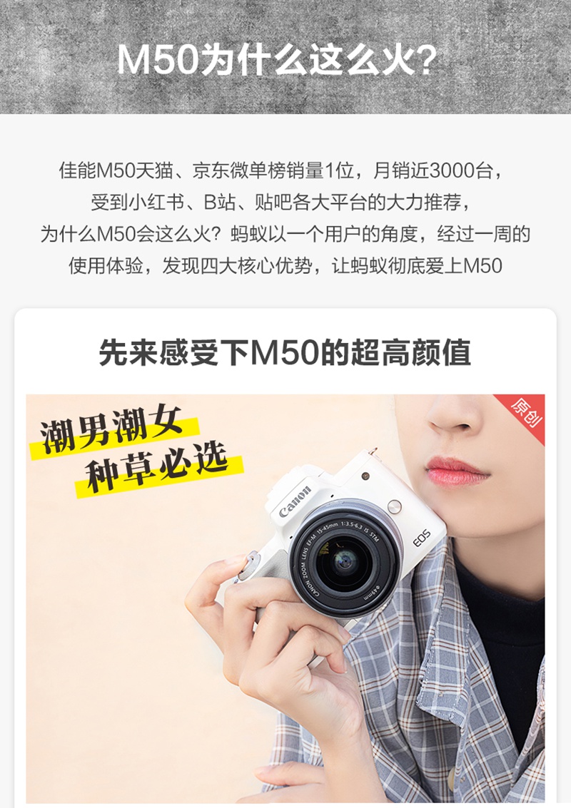 首页 > > 佳能m50微单相机蚂蚁摄影高清数码旅游学生入门级EOS M50