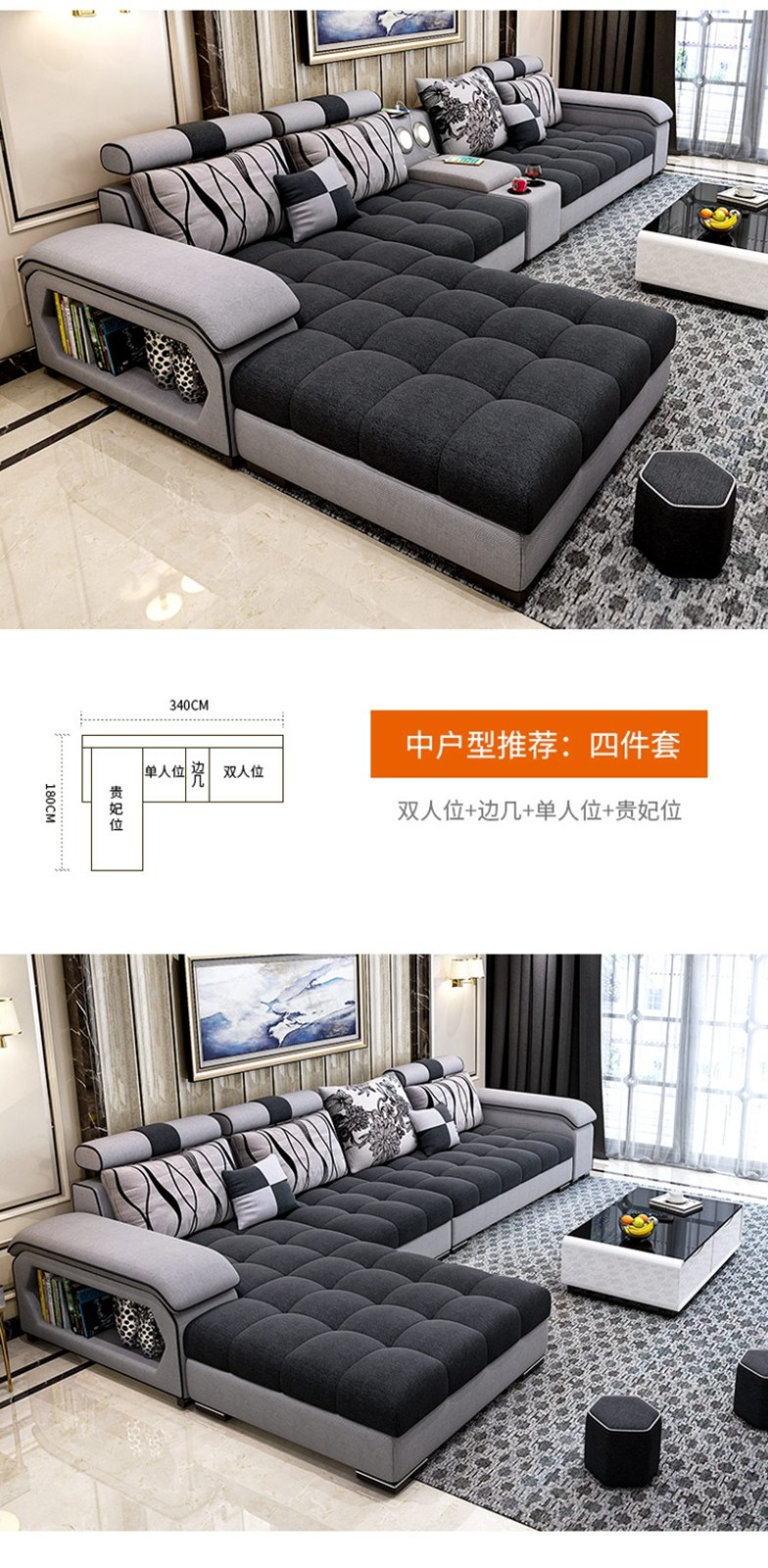 首页 > > 布艺沙发简约现代大小户型客厅转角北欧布沙发可拆洗组合整装家具