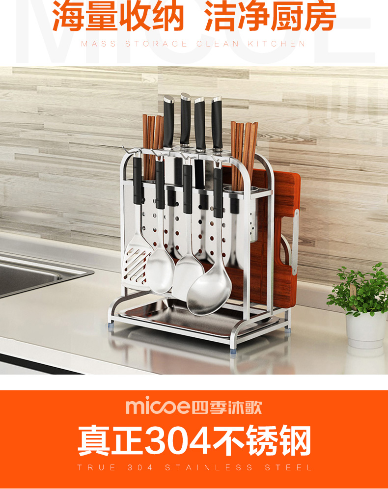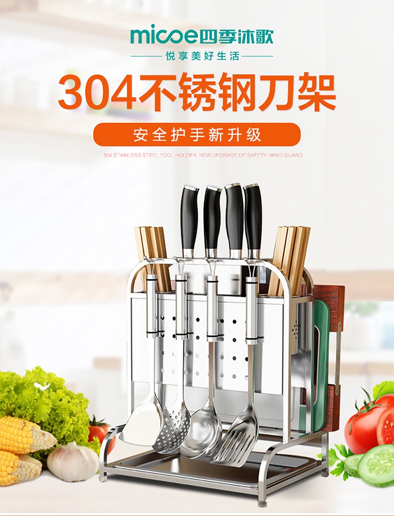首页 > > 四季沐歌不锈钢刀架厨房多功能置物架菜刀砧板架收纳架子厨房用品
