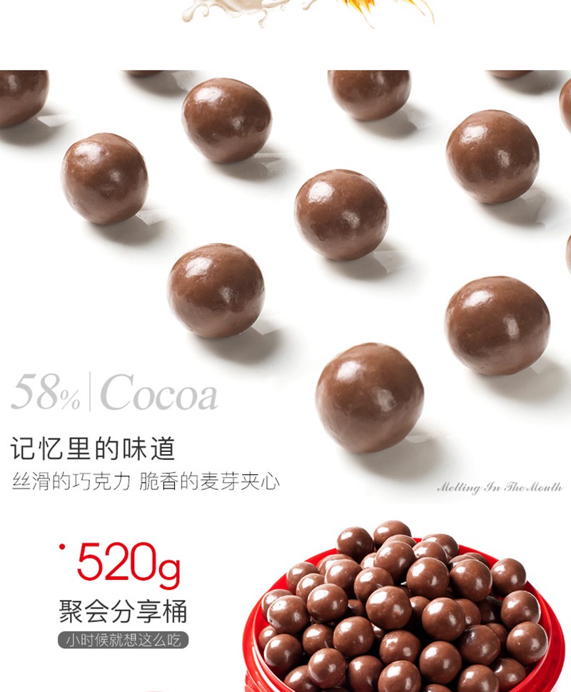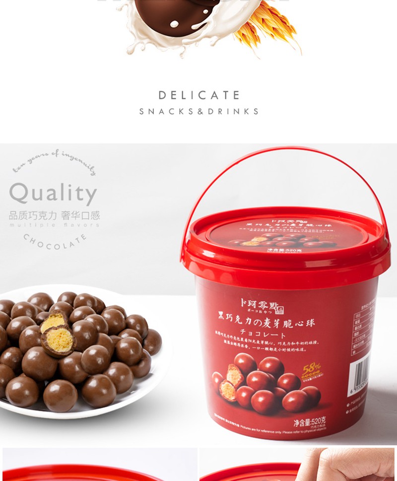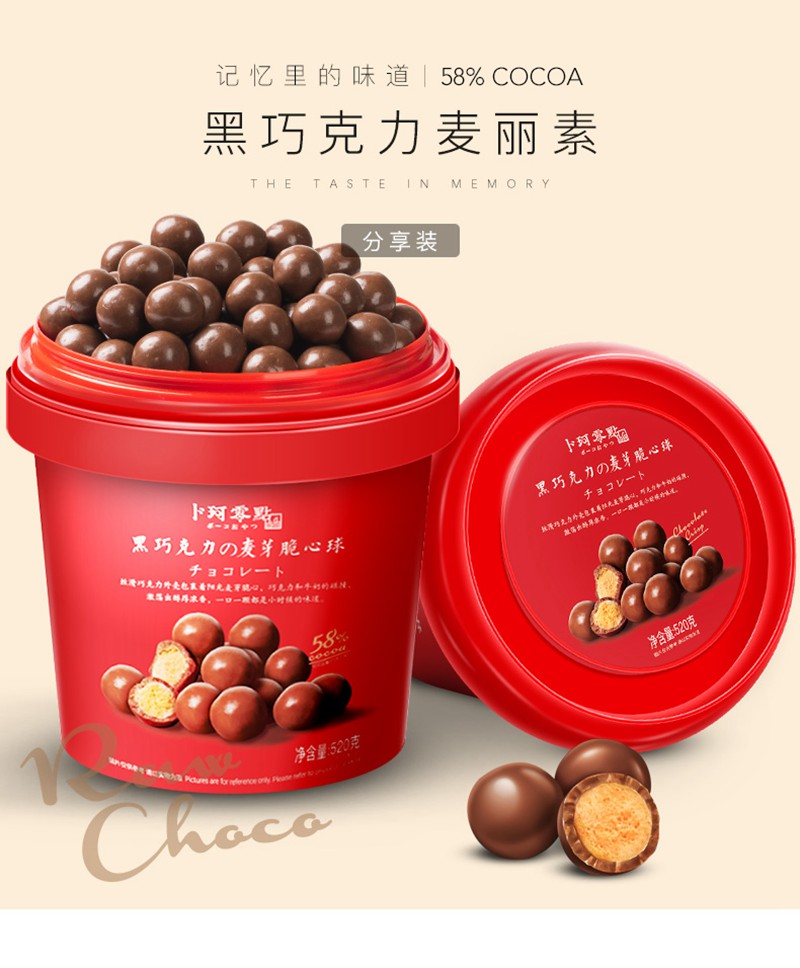 首页 > > 桶装怀旧黑巧克力夹心麦芽脆心球零食朱古力糖果送儿童