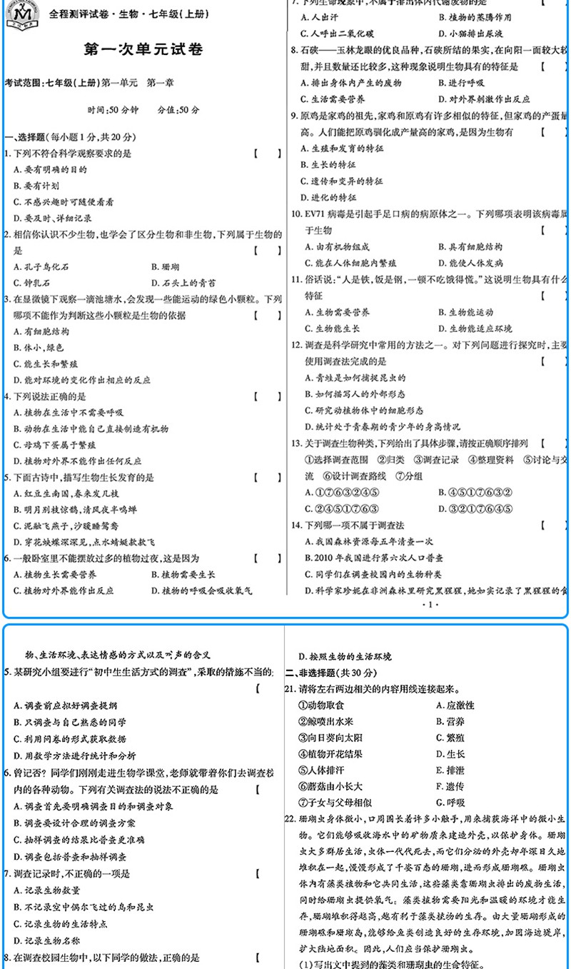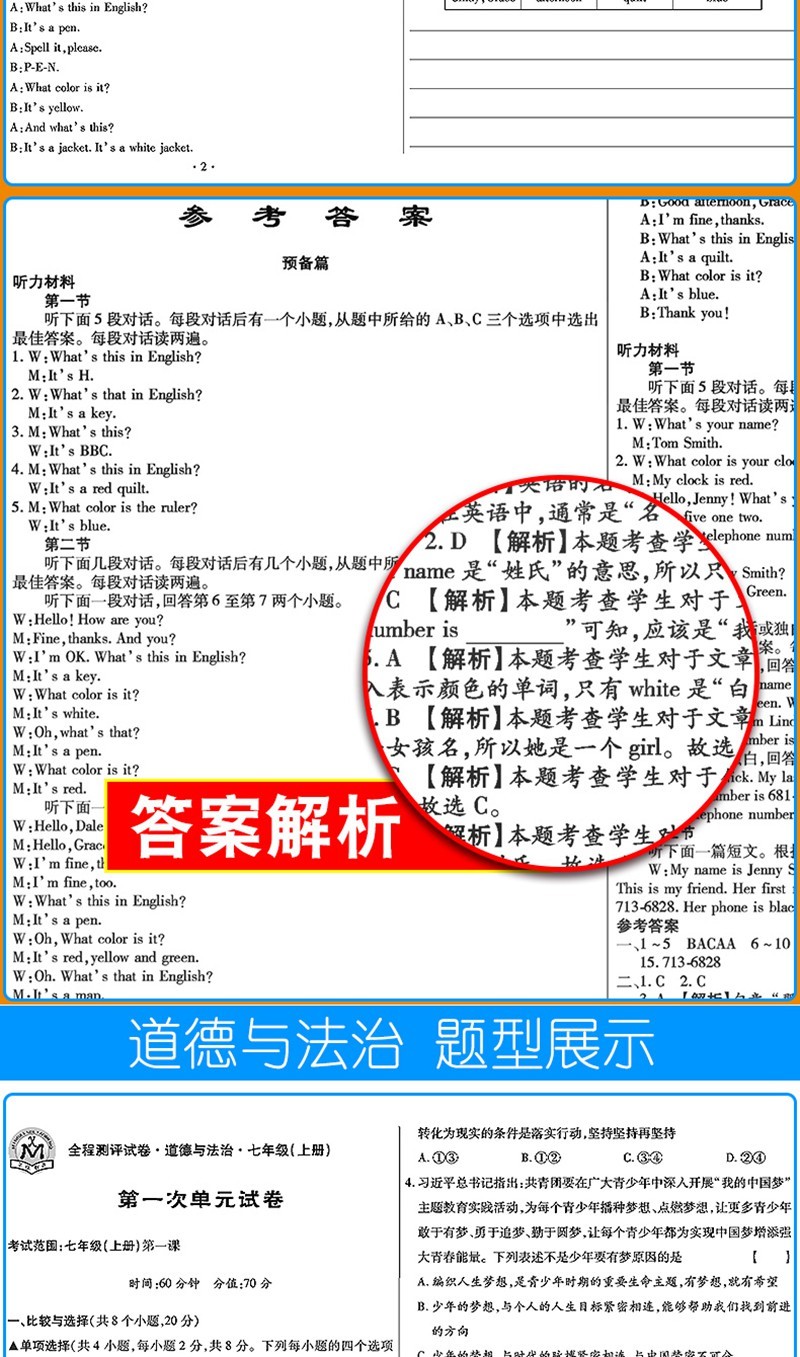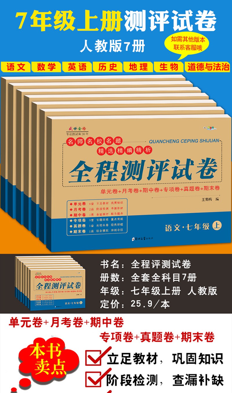 七年级上册试卷全套同步训练人教版7册语文英语听力数学辅导资料练习册单元月考期中期末复习初中1初一必刷题练习题模拟测试卷课练